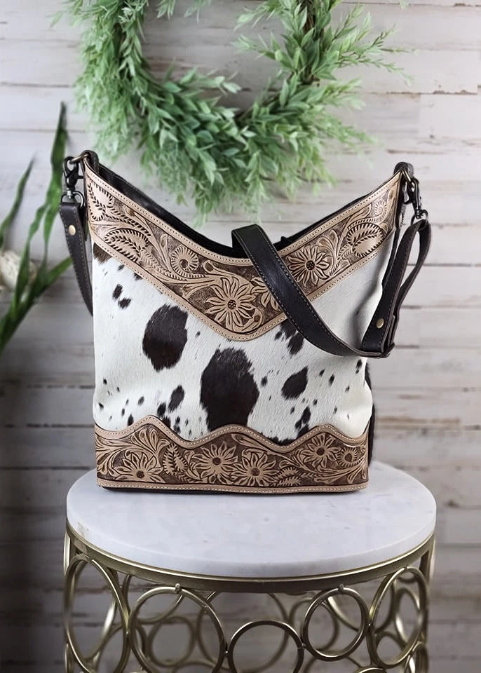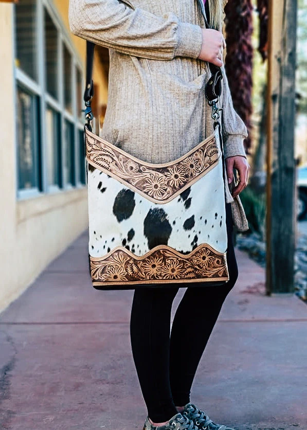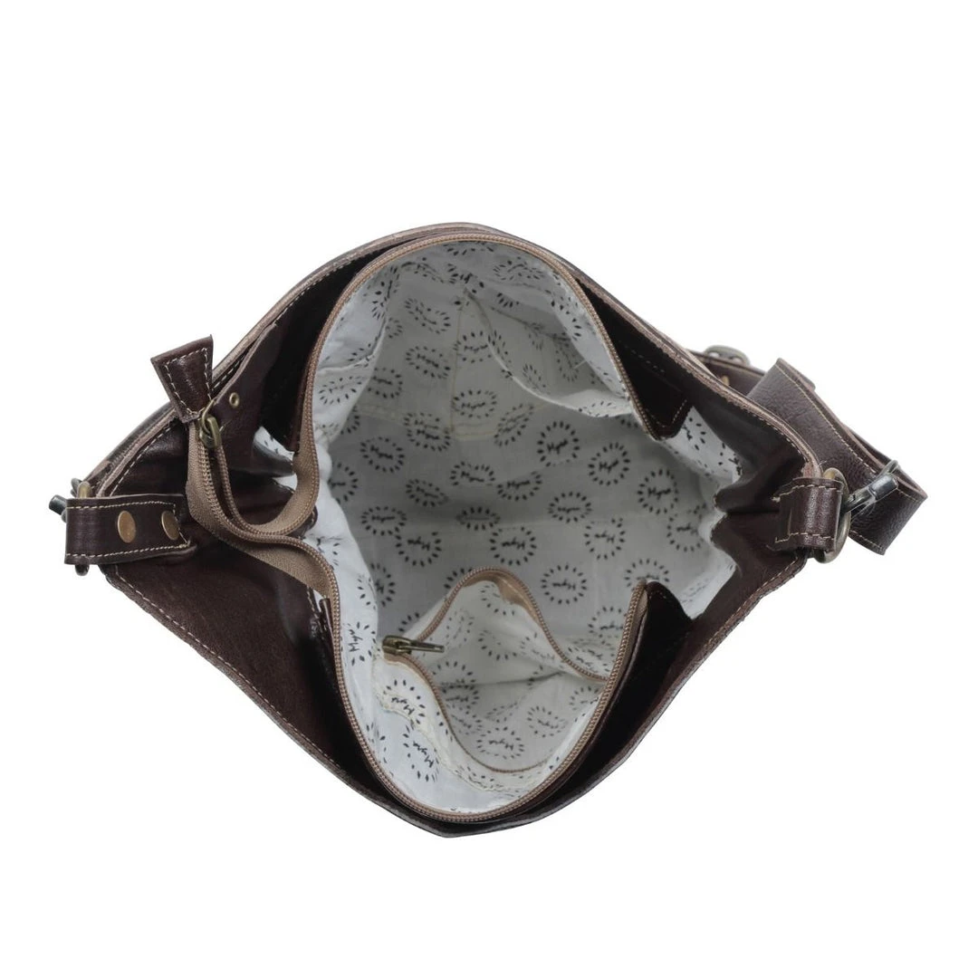 - Crafted from high-quality cowhide leather, the Myra Sophisticated Sleek Crossbody Handbag offers durability and a luxurious feel.