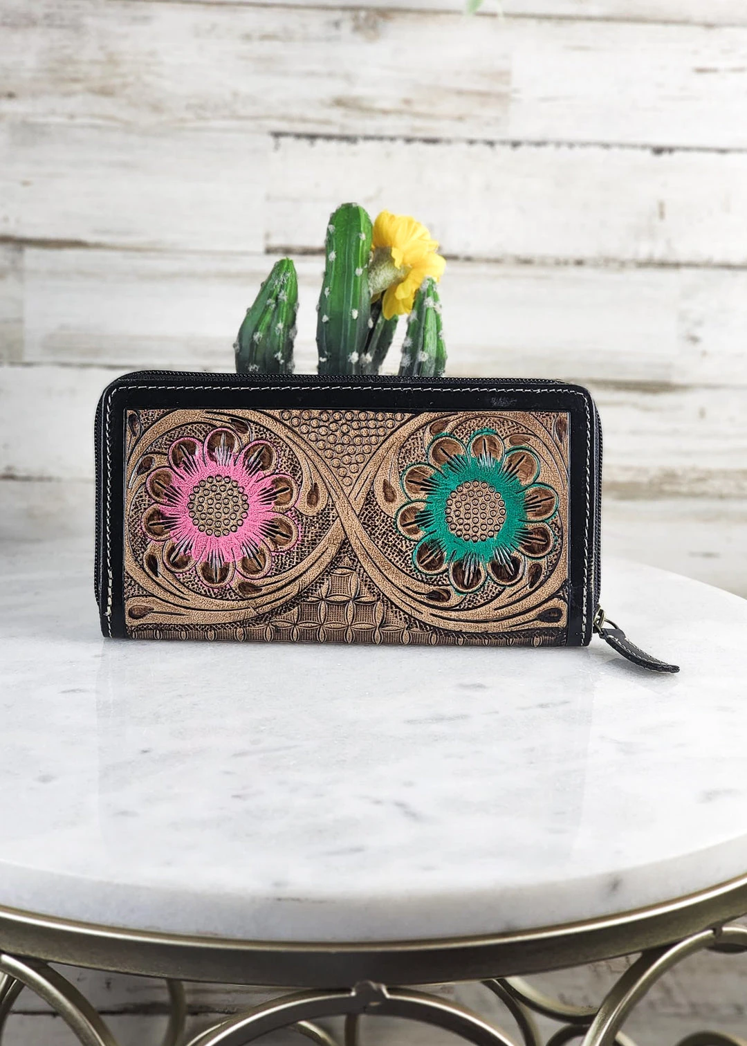 - The Myra Speak Floral To Me Tooled Wallet combines elegance with practicality. Featuring a beautifully tooled floral design, this wallet is perfect for everyday use.