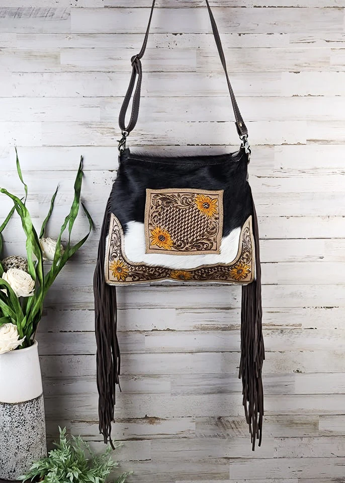 - Premium Cowhide Leather: Crafted from high-quality cowhide leather, the Myra Stay Wild Handbag offers durability and a luxurious feel.