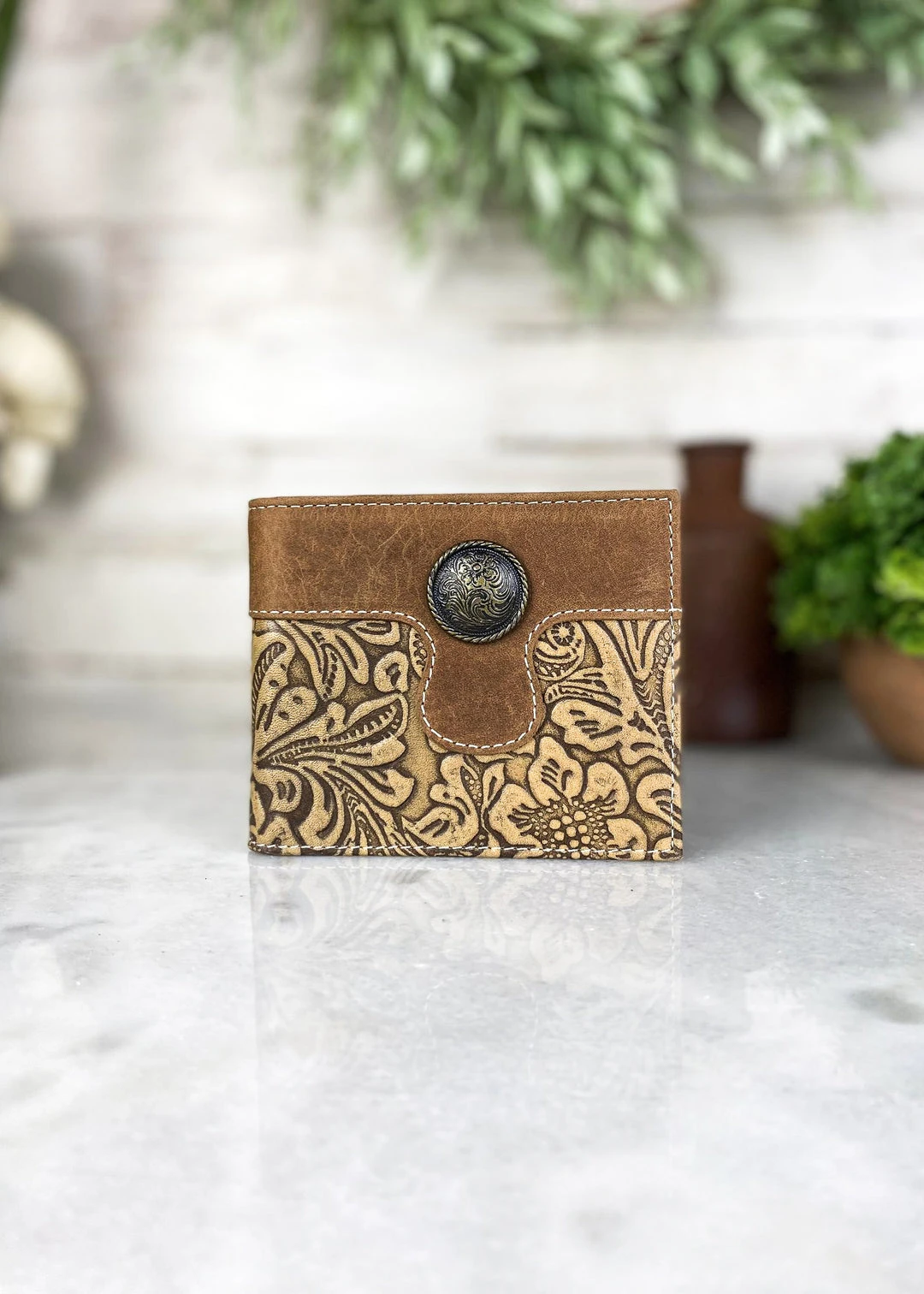 - Don’t miss out on this MEGA SALE! Shop the Myra Tan Floral Embossed Bi-Fold Wallet today and add a touch of sophistication to your accessories collection.