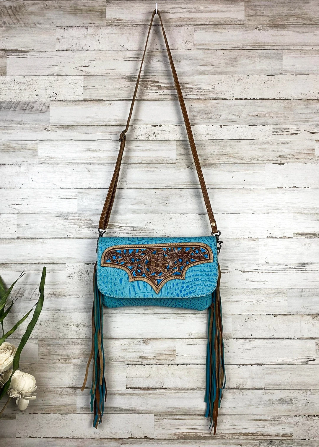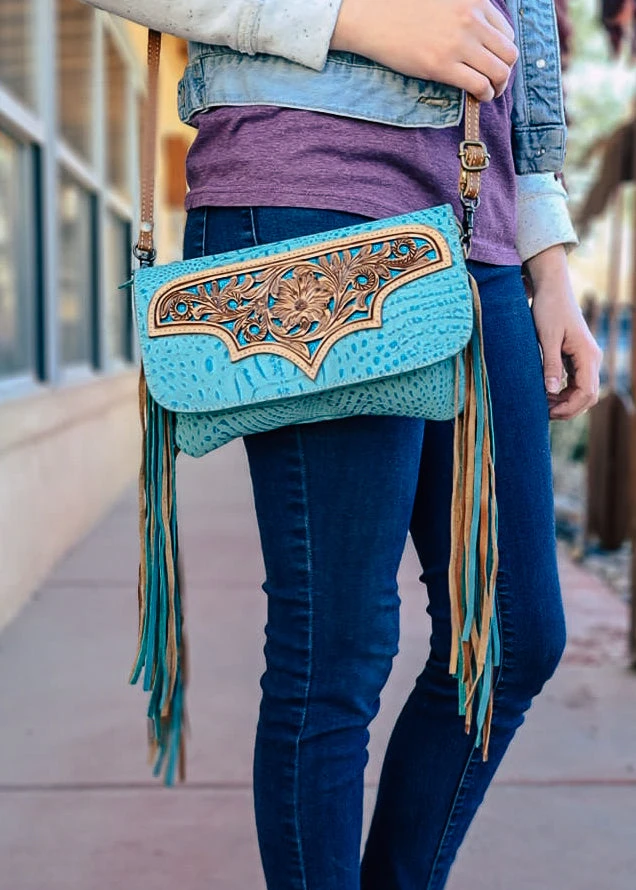 - Enhance your style with the Myra Teal Nostalgic Fringe Crossbody Bag. Its unique teal color and fringe detailing make it a standout accessory for any outfit.