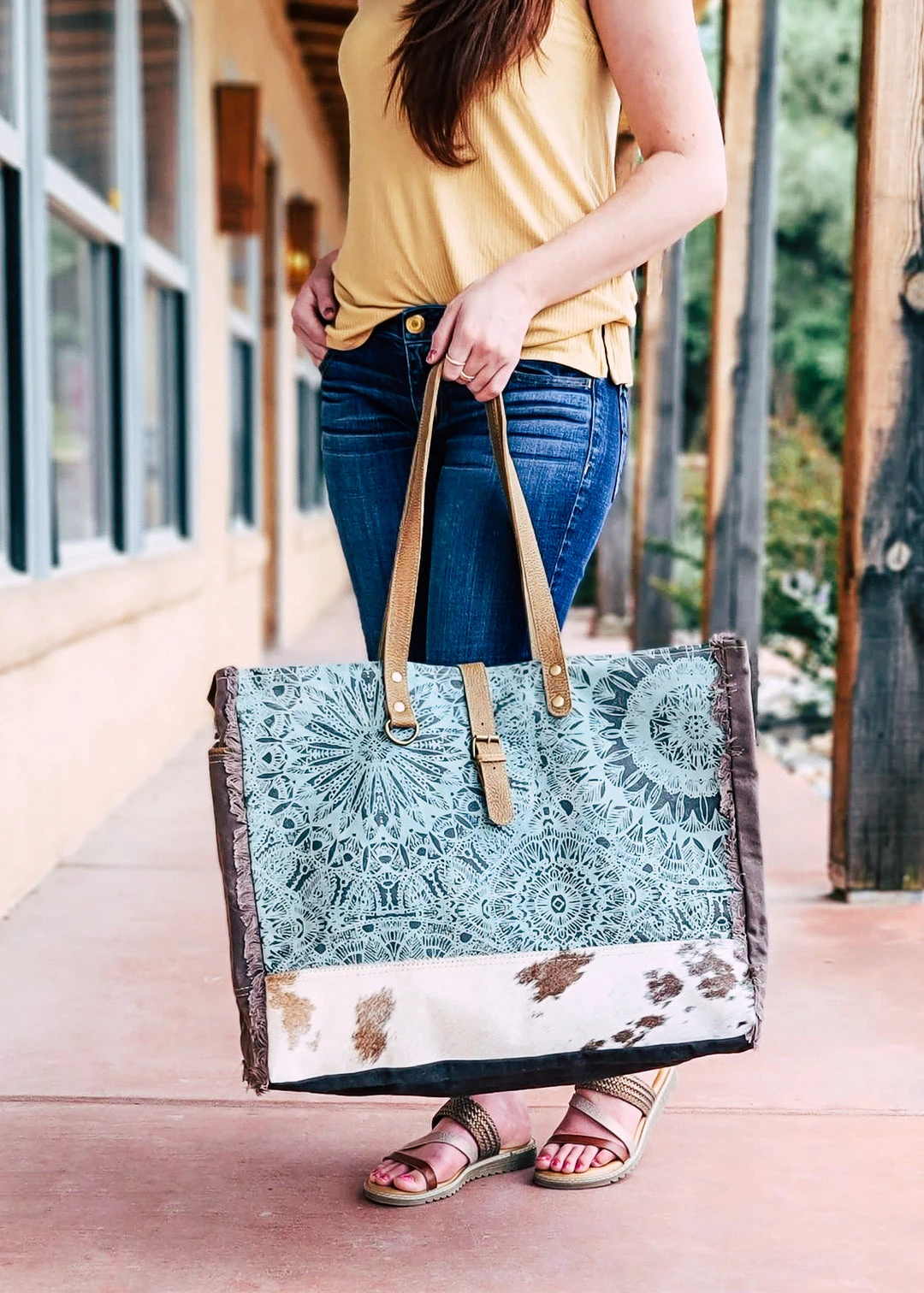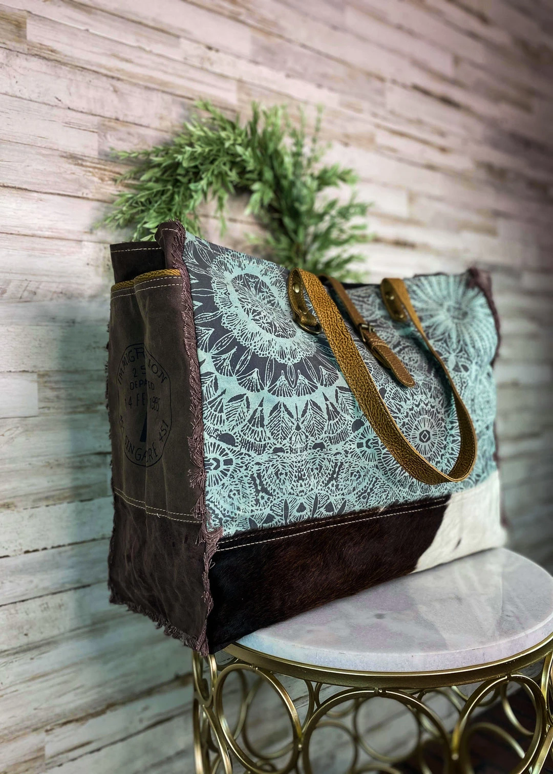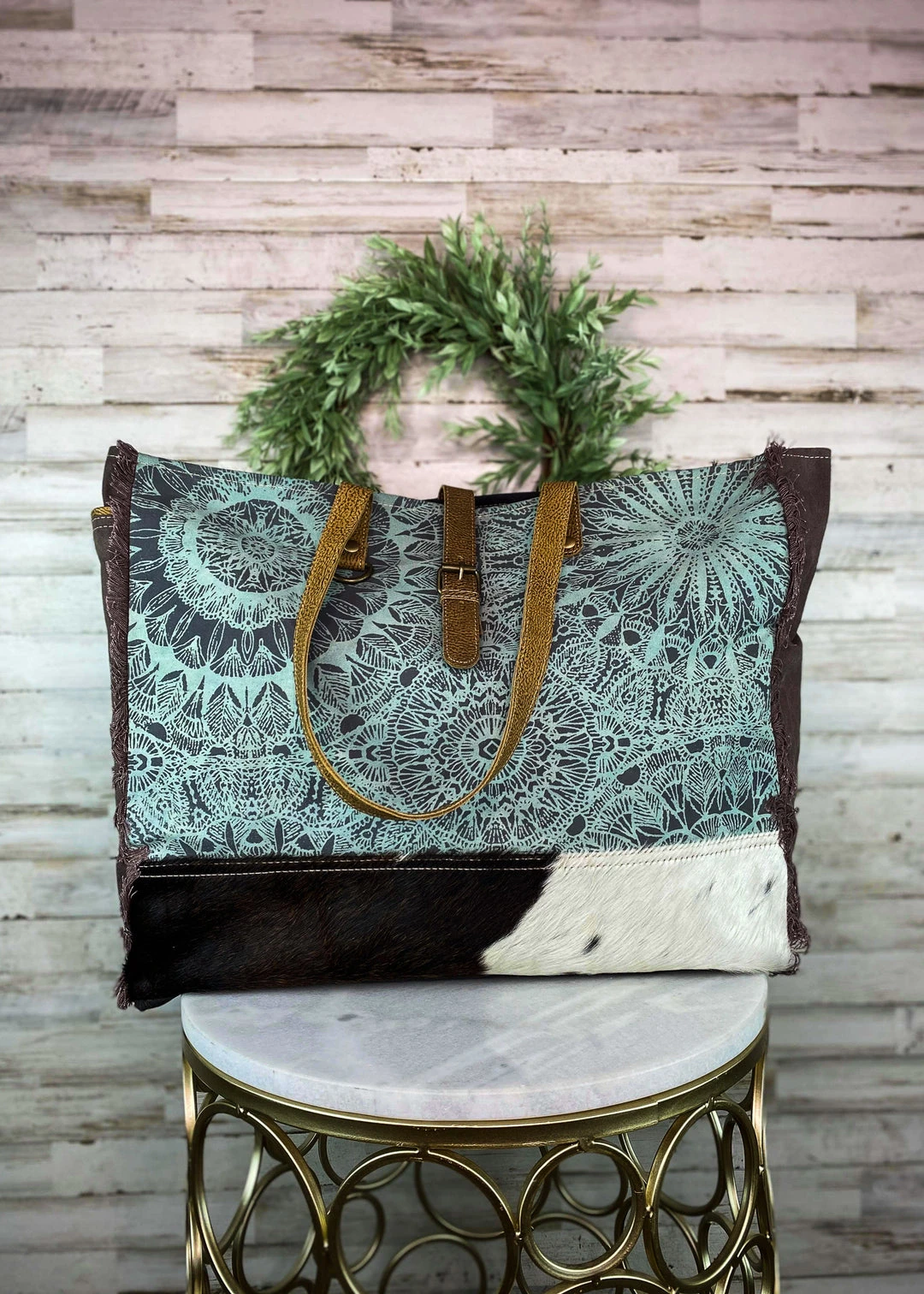 - The Myra Teal Pattern Cowhide Weekender Bag combines style and functionality, making it the perfect travel companion for short trips or weekend getaways.