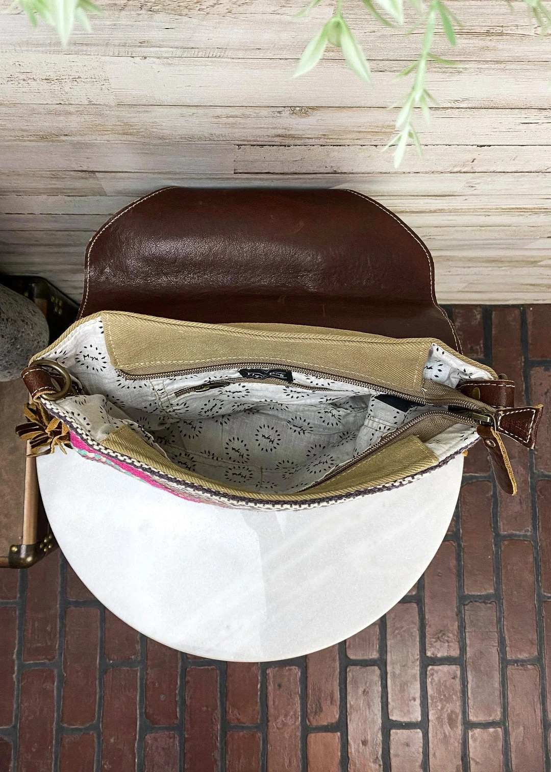 - Crafted from high-quality materials, the Myra Crossbody Bag is durable and built to last. The vibrant pattern is fade-resistant, maintaining its beauty over time.