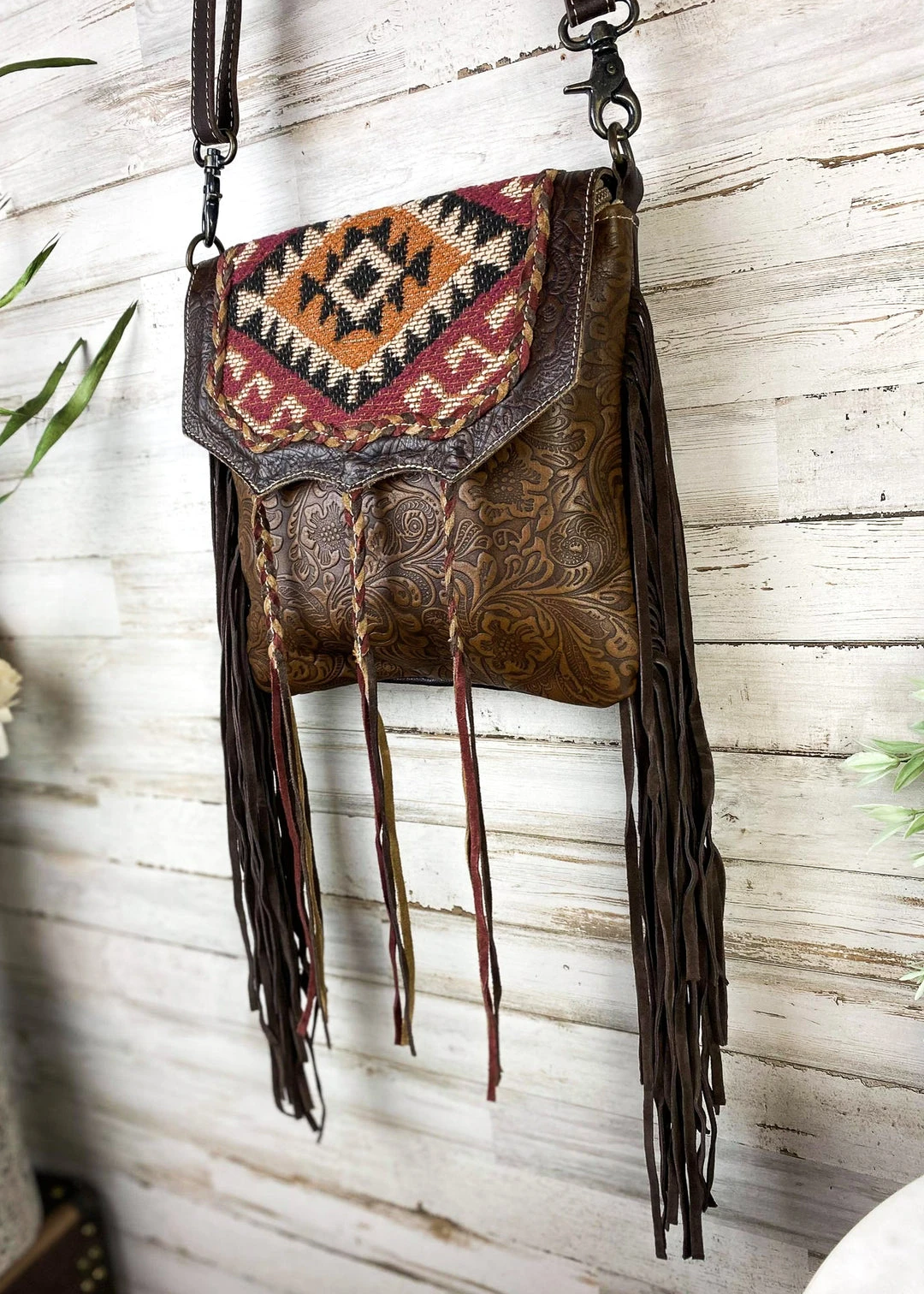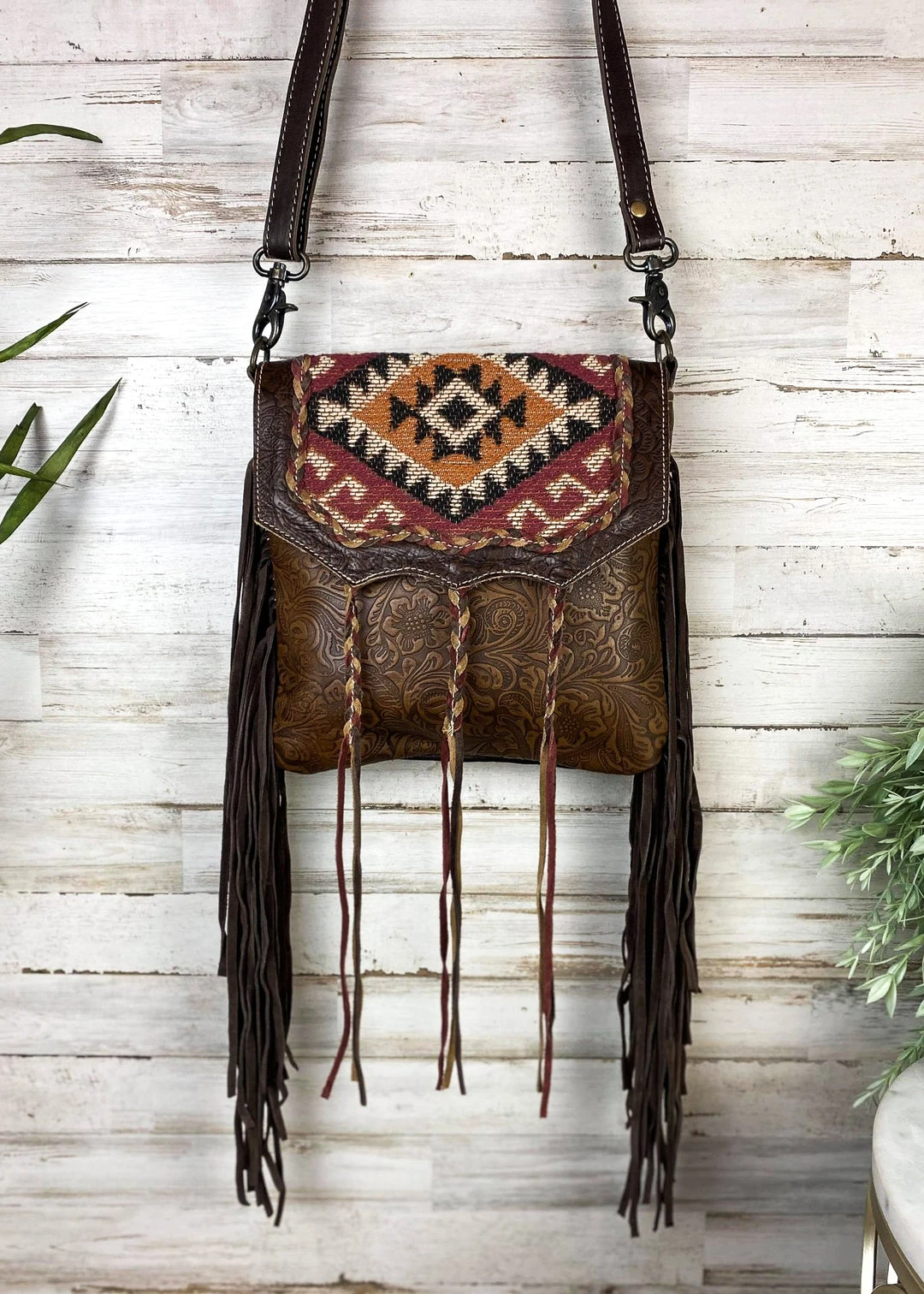 - Enhance your style with the Myra Vintage Aztec Braided Fringe Crossbody Handbag & Wallet Set. This set combines functionality with a unique bohemian design, featuring intricate Aztec patterns and stylish fringe details.
