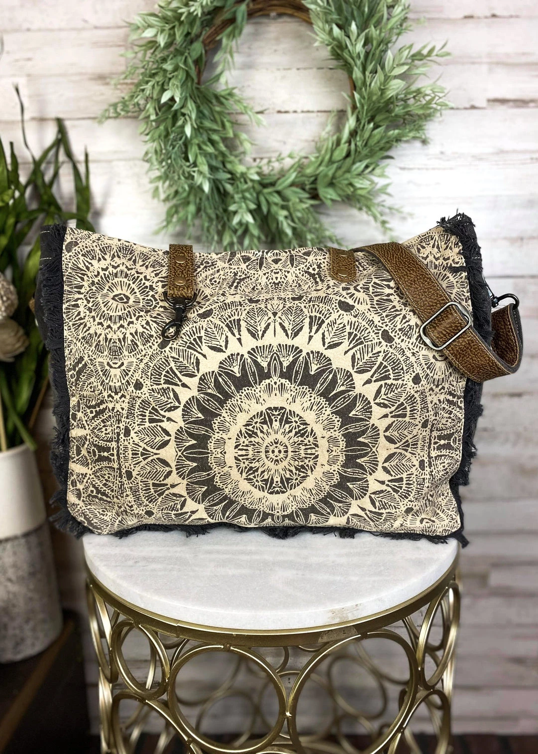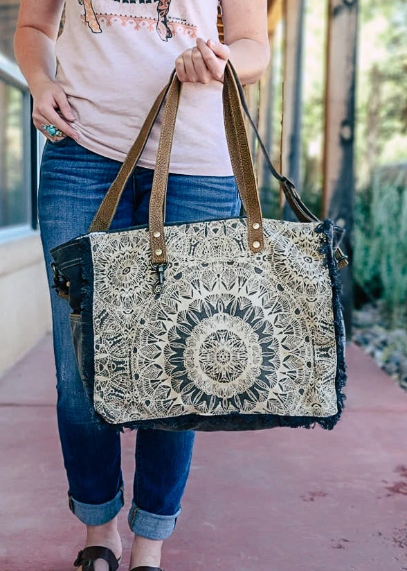 - The Myra Voyage Pattern Weekender Handbag is designed for the modern traveler, featuring a trendy pattern that complements any outfit. Its spacious interior ensures you can carry all your essentials with ease.