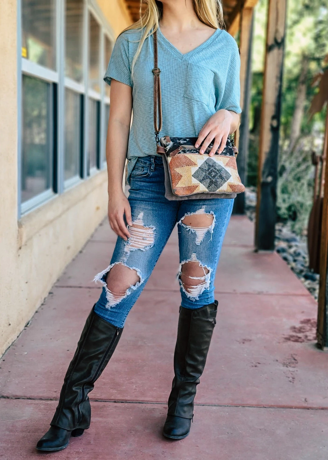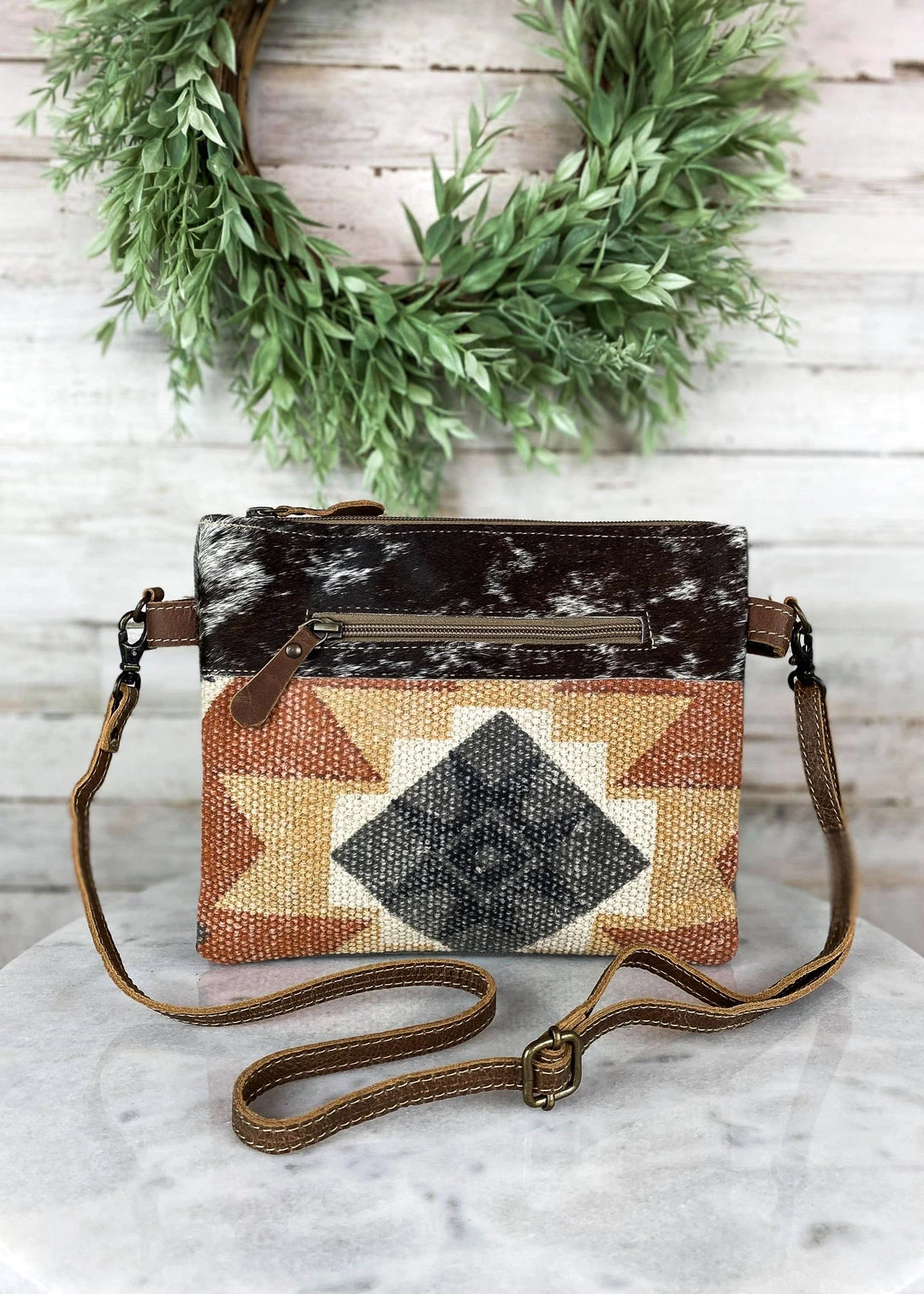 - Crafted from premium cowhide leather, the Myra Warm Aztec Crossbody Handbag offers a unique Aztec design that stands out in any crowd.
