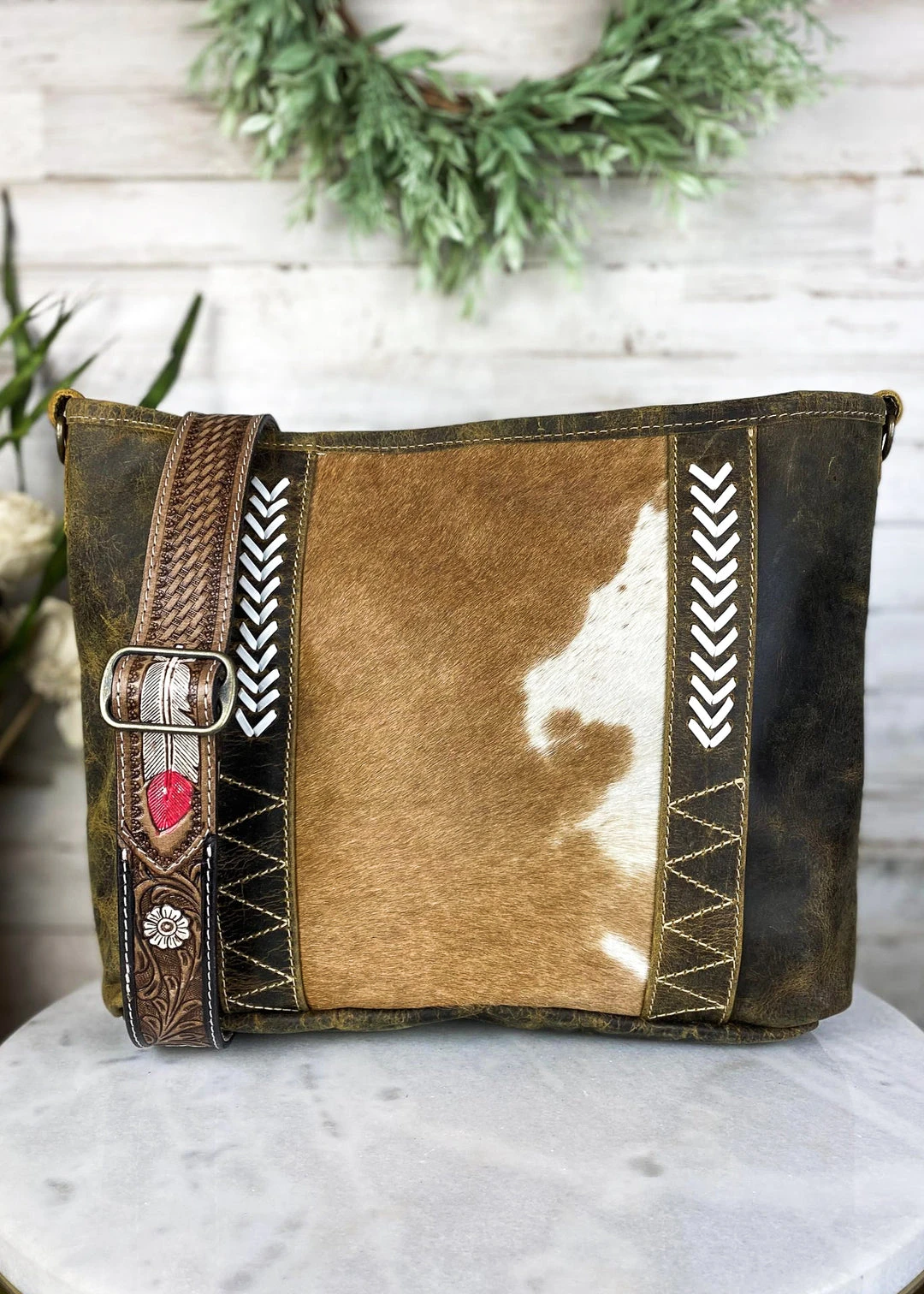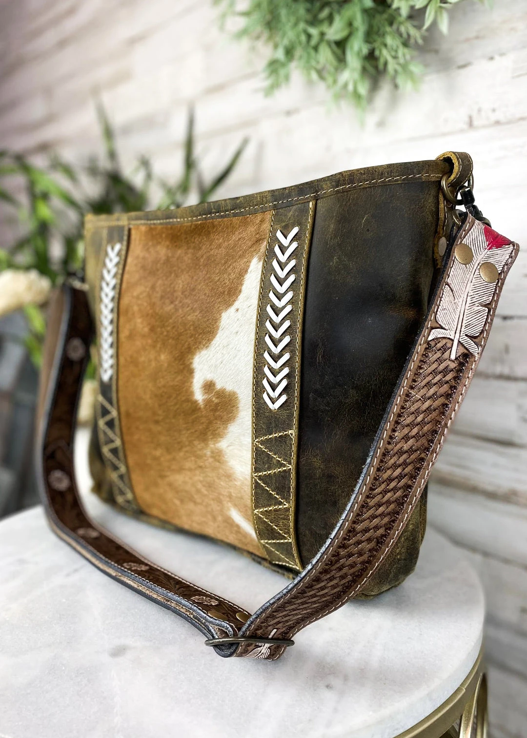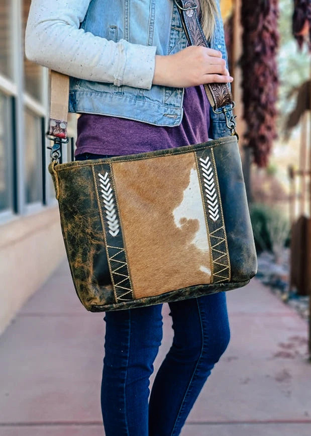 - Experience the perfect blend of fashion and functionality. The Myra Westbound Roses & Cowhide Crossbody Handbag is ideal for everyday use or special occasions.