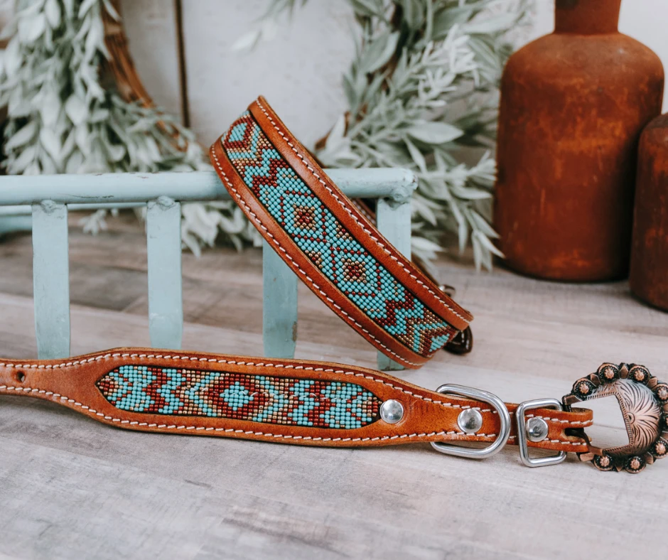 - Enhance your dog’s look with the Shiloh Mint & Brown Beaded Dog Collar, a perfect blend of style and durability for your furry friend.
