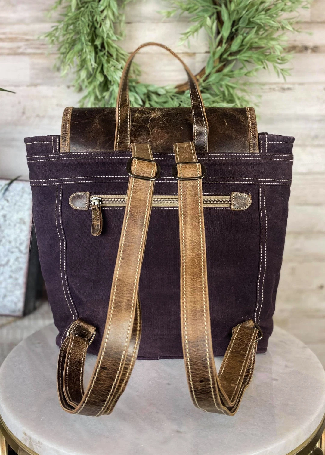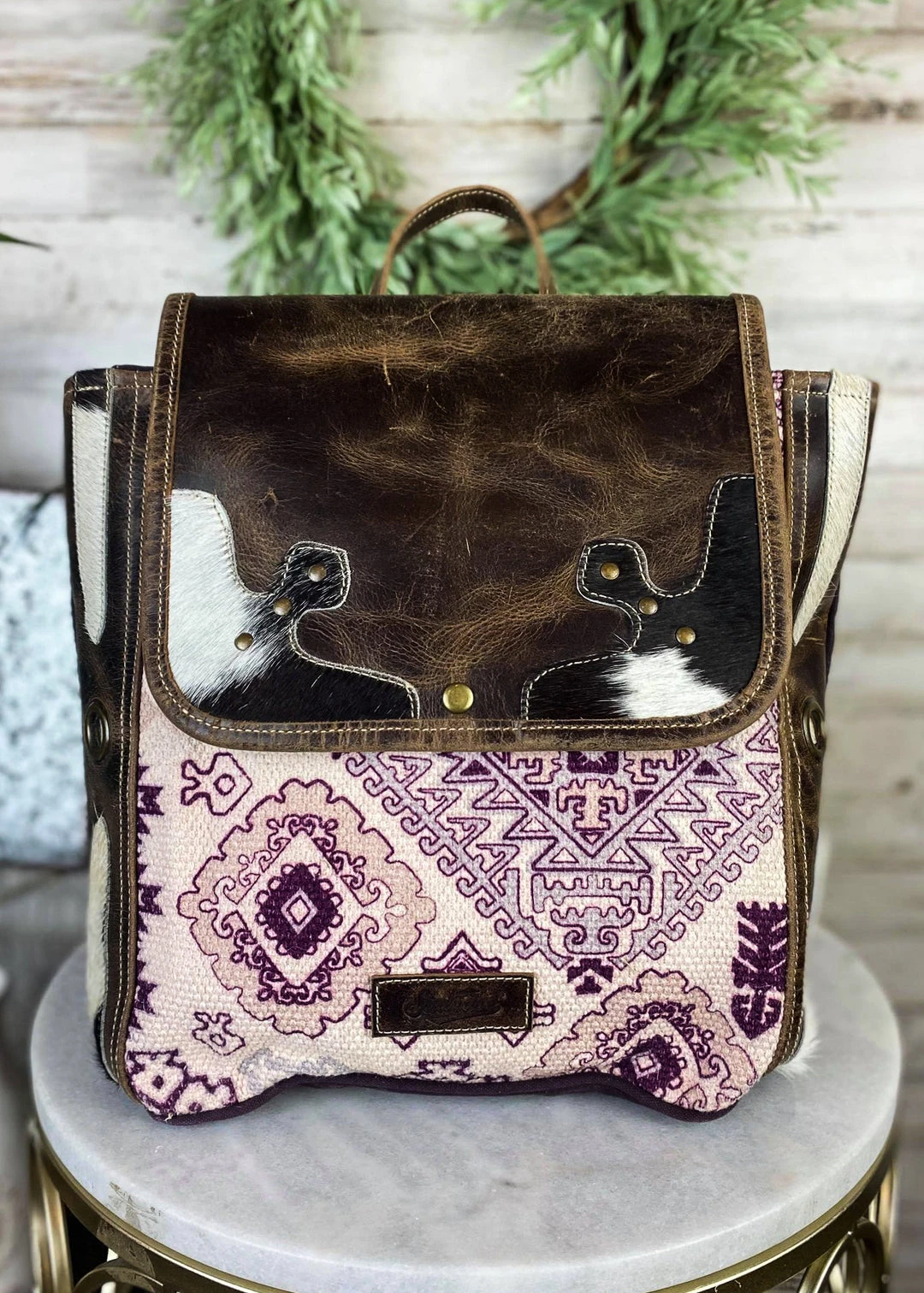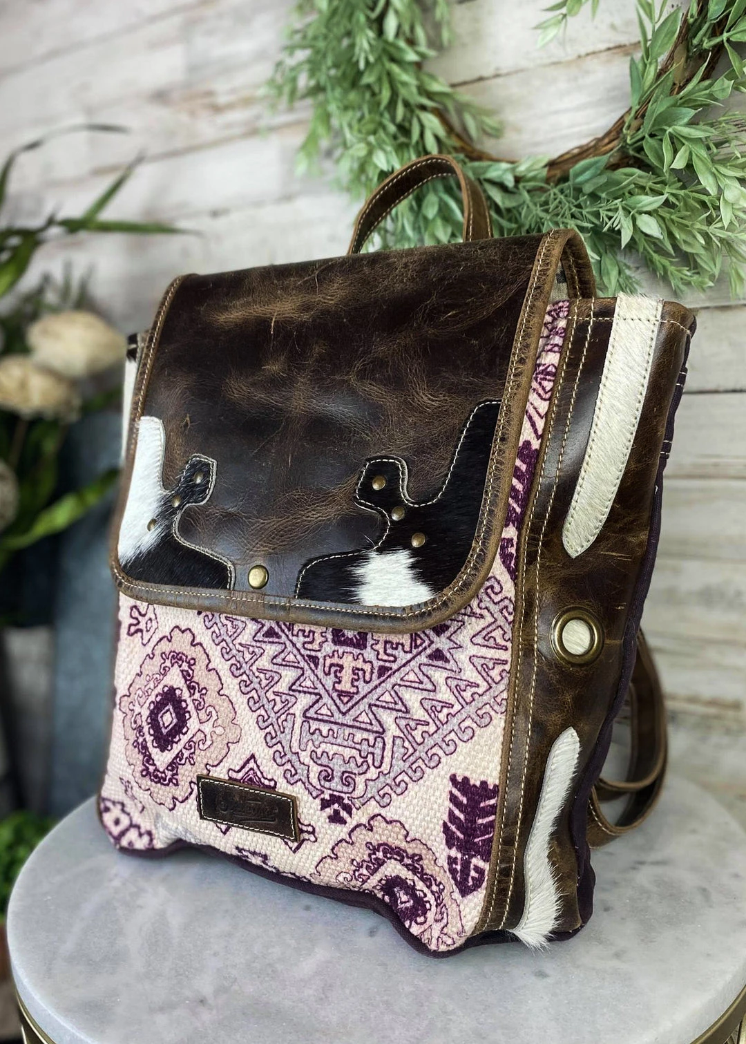 - The Sixtease Antique Purple Leather & Cowhide Backpack combines timeless elegance with modern functionality. Crafted from premium antique purple leather and durable cowhide, this backpack is designed to last.