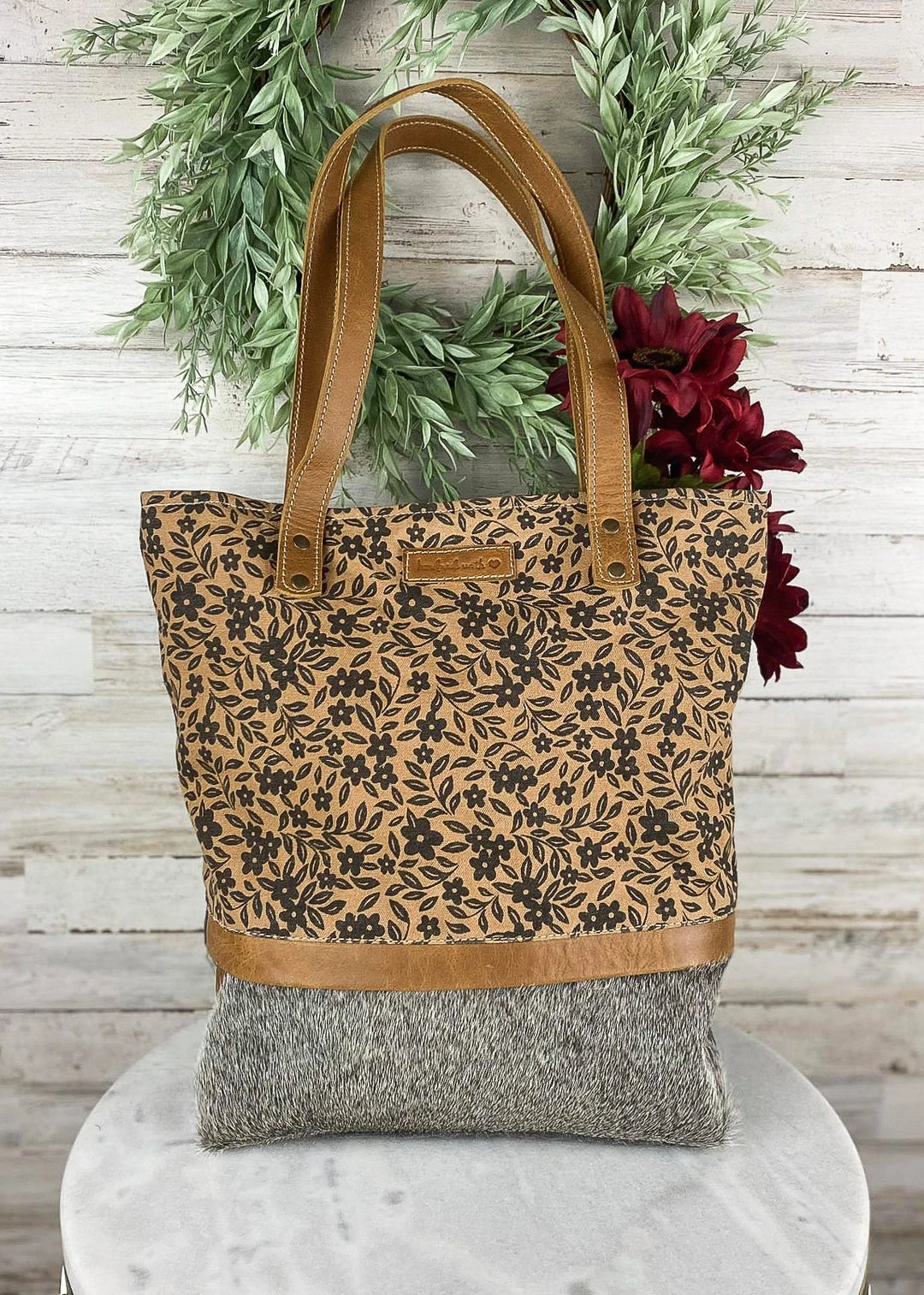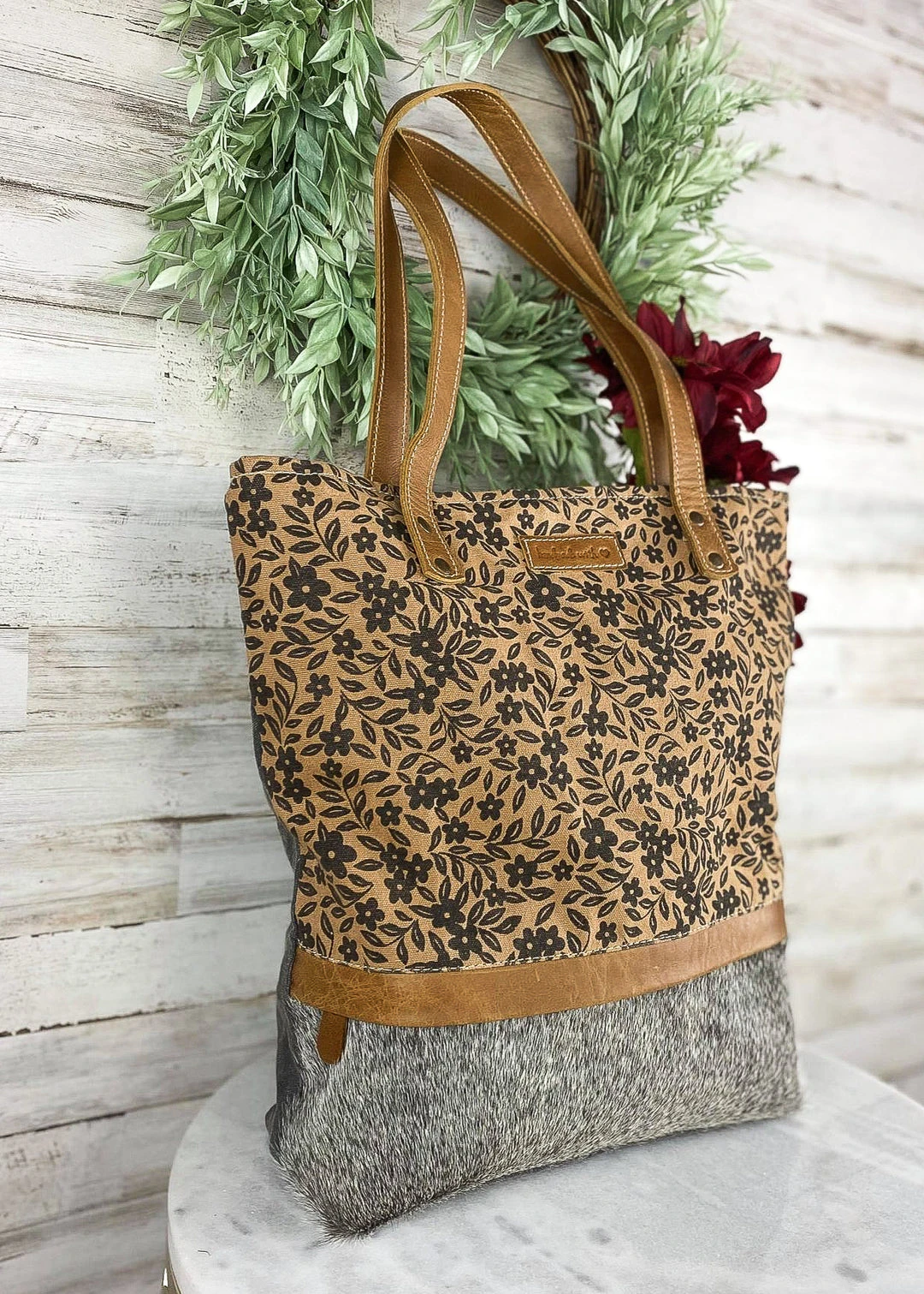 - Elevate your style with the Sixtease Divine Floral & Cowhide Tote Handbag. This exquisite tote bag features a unique floral design combined with the durability of cowhide leather, making it both fashionable and long-lasting.