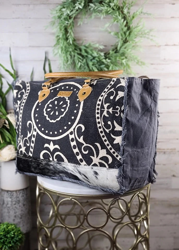 - Cowhide will vary. No two bags will be the same. You may or may not receive the image examples shown.Â