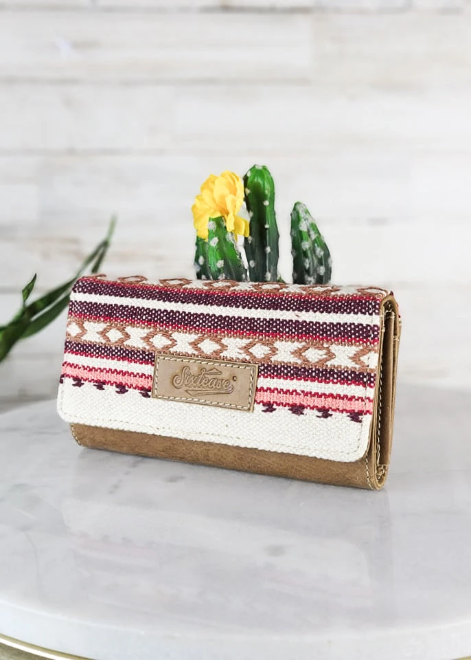 - Elevate your style with the Sixtease Plum & Pink Aztec Wallet, featuring a vibrant Aztec print design that adds a pop of color to any outfit.