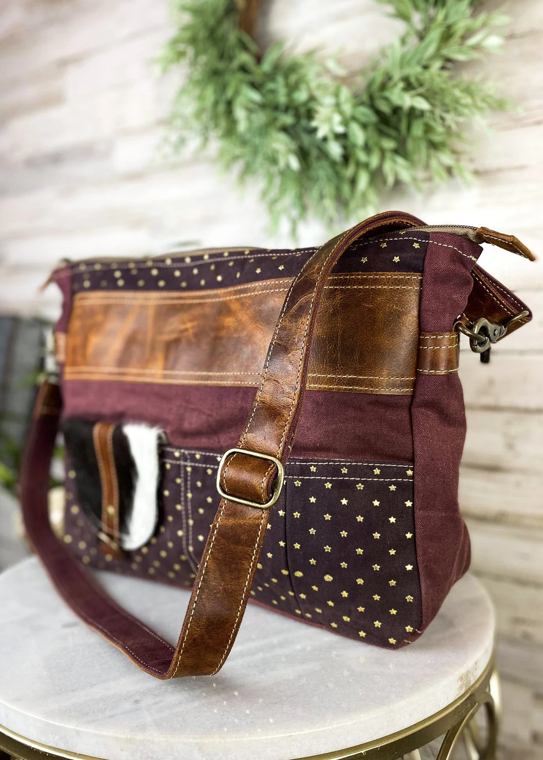 - Crafted from high-quality cowhide leather, the Sixtease Plum Star Spirit Crossbody Handbag offers both durability and a luxurious feel. Its rich plum color adds a touch of sophistication to any outfit.