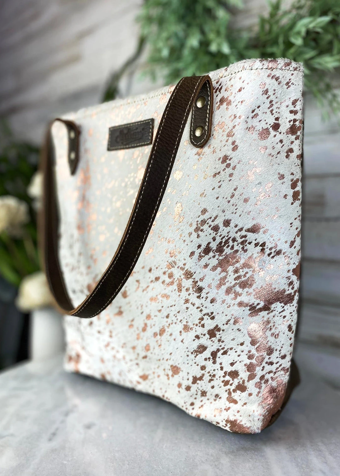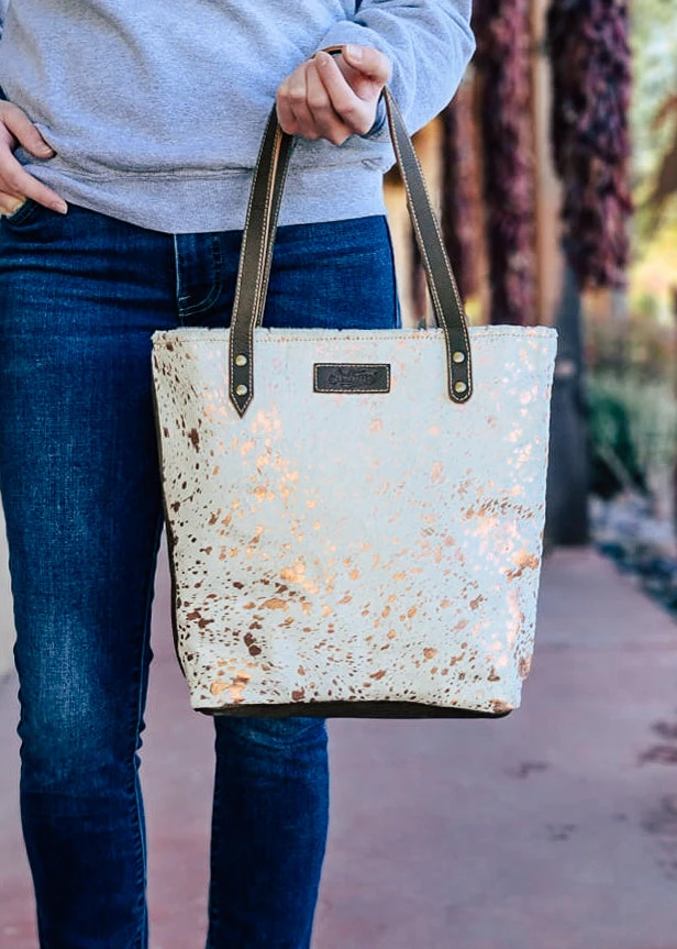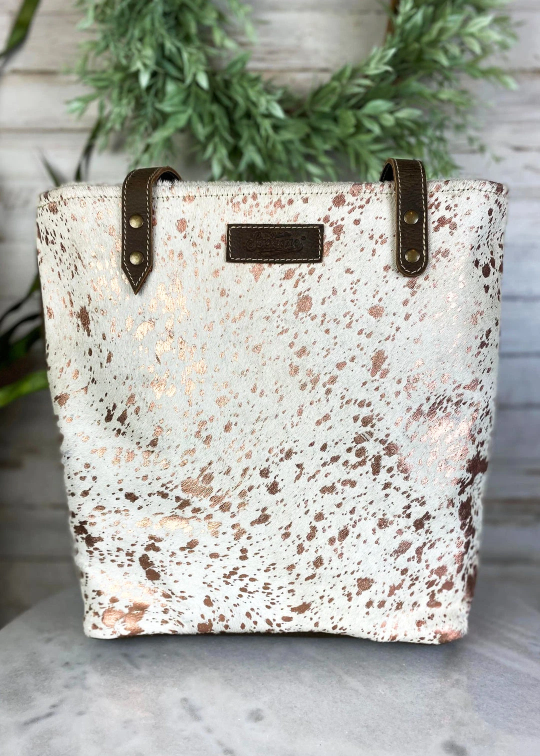 - Upgrade your accessory collection with the Sixtease Rose Gold Cowhide Tote Handbag. Perfect for the modern woman who values both style and functionality.