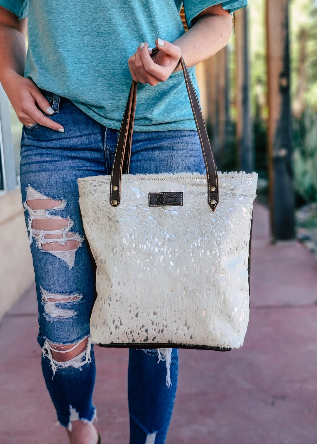 - Add a touch of elegance to your wardrobe with the Sixtease Silver Splattered Cowhide Tote Handbag. Order now and enjoy the perfect blend of fashion and functionality.