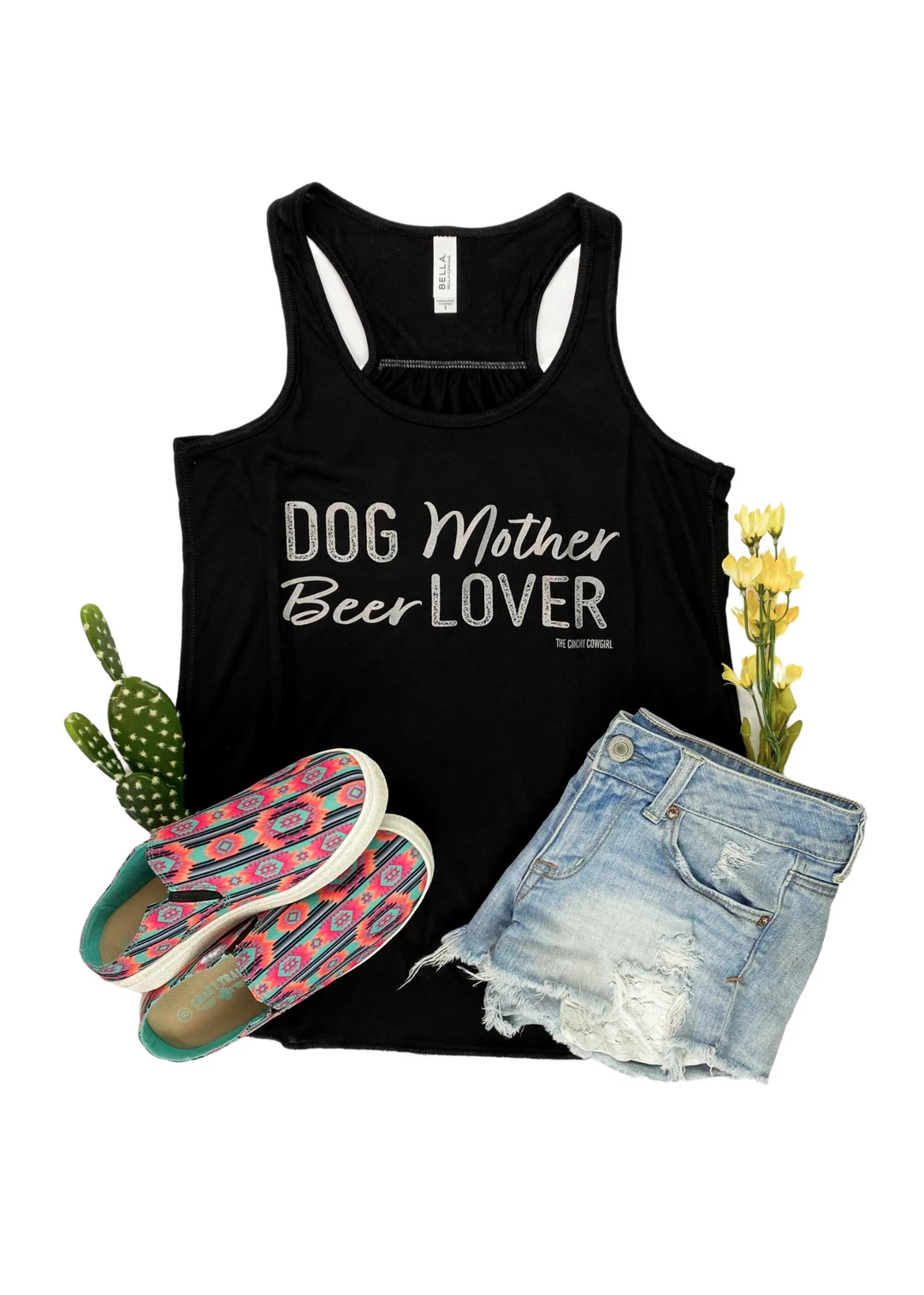- Show off your love for beer and your furry friends with The Cinchy Cowgirl Black Dog Mother Beer Lover Tank Top. This stylish graphic tank is perfect for casual outings or relaxing at home.
