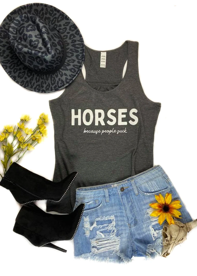 - Express your unique style with The Cinchy Cowgirl Charcoal Horses Because People Suck Tank Top. Featuring a bold graphic design, this tank top is perfect for casual outings or lounging.