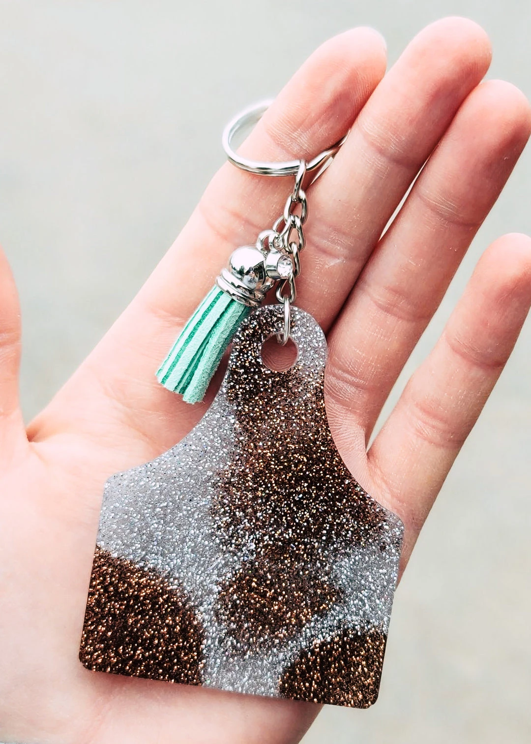 - Ideal for gifting, this cowprint ear tag keychain is a thoughtful present for friends, family, or anyone who loves Western-themed accessories. Perfect for birthdays, holidays, or just because!