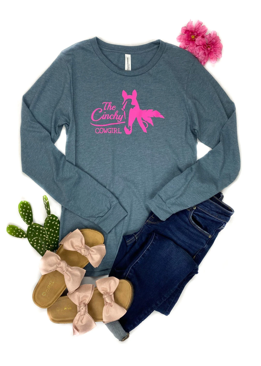 - Fast and reliable shipping available. Enjoy hassle-free returns and secure payment options. Add The Cinchy Cowgirl Heather Slate Logo Long Sleeve Tee to your cart today!
