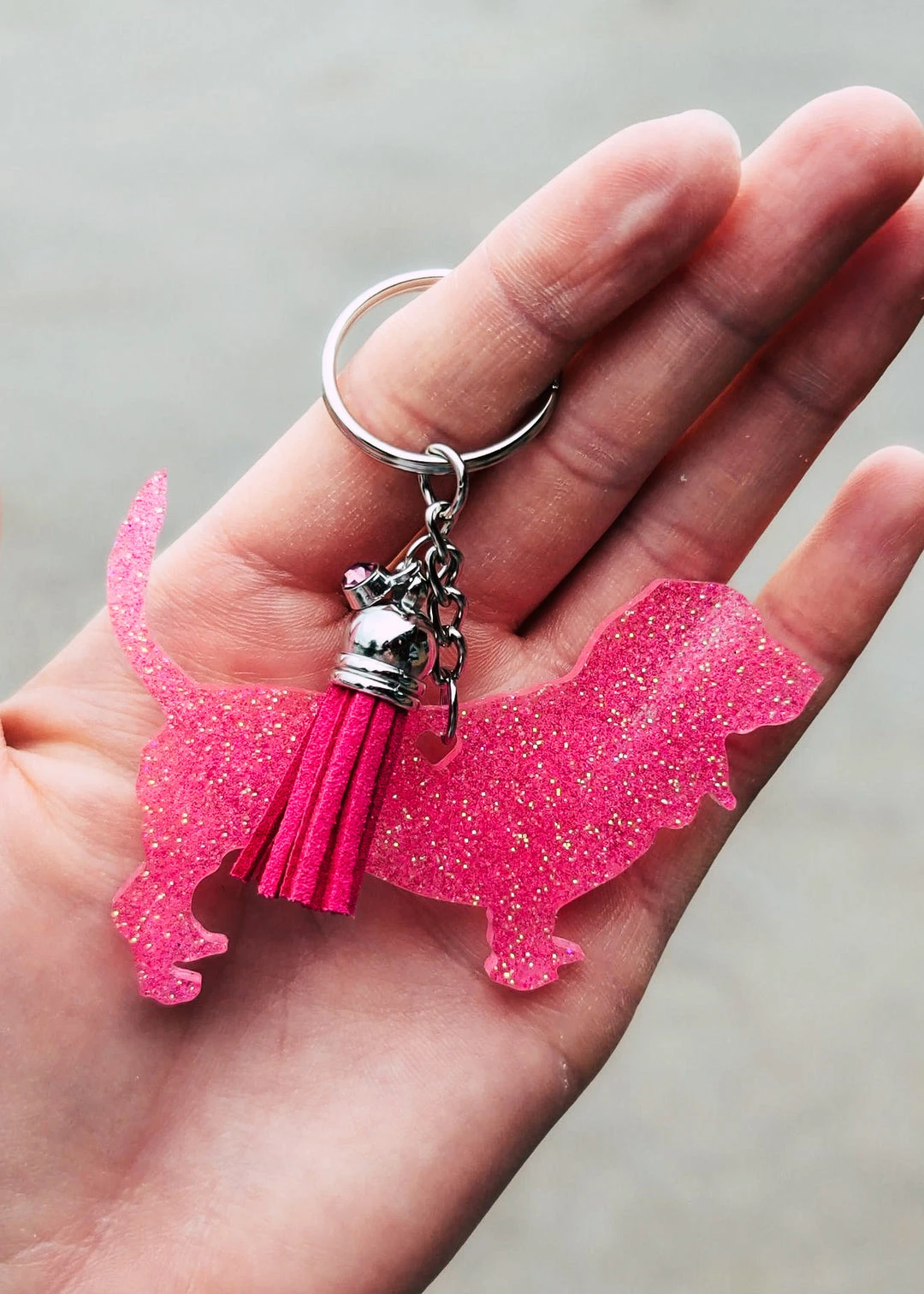 - Add a touch of charm to your keys with the Cinchy Cowgirl Pink Basset Hound Keychain. This stylish accessory is perfect for dog lovers and fashion enthusiasts alike.