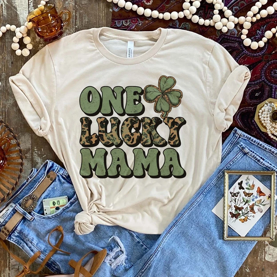 - Show off your unique style with the Thelattimoreclaim Cream ‘One Lucky Mama’ Graphic Tee. This soft and breathable tee is perfect for everyday wear.