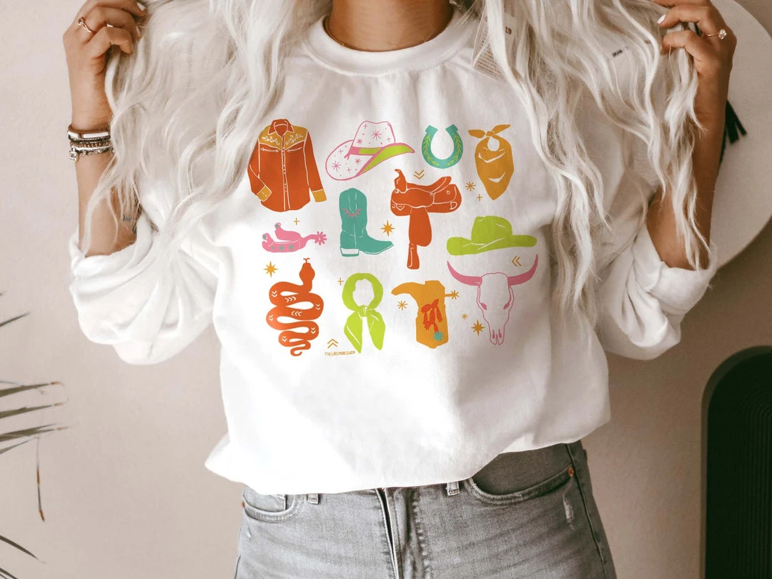 - Perfect for cowgirl enthusiasts, this sweatshirt features a unique western graphic that adds a touch of rustic charm to your wardrobe.
