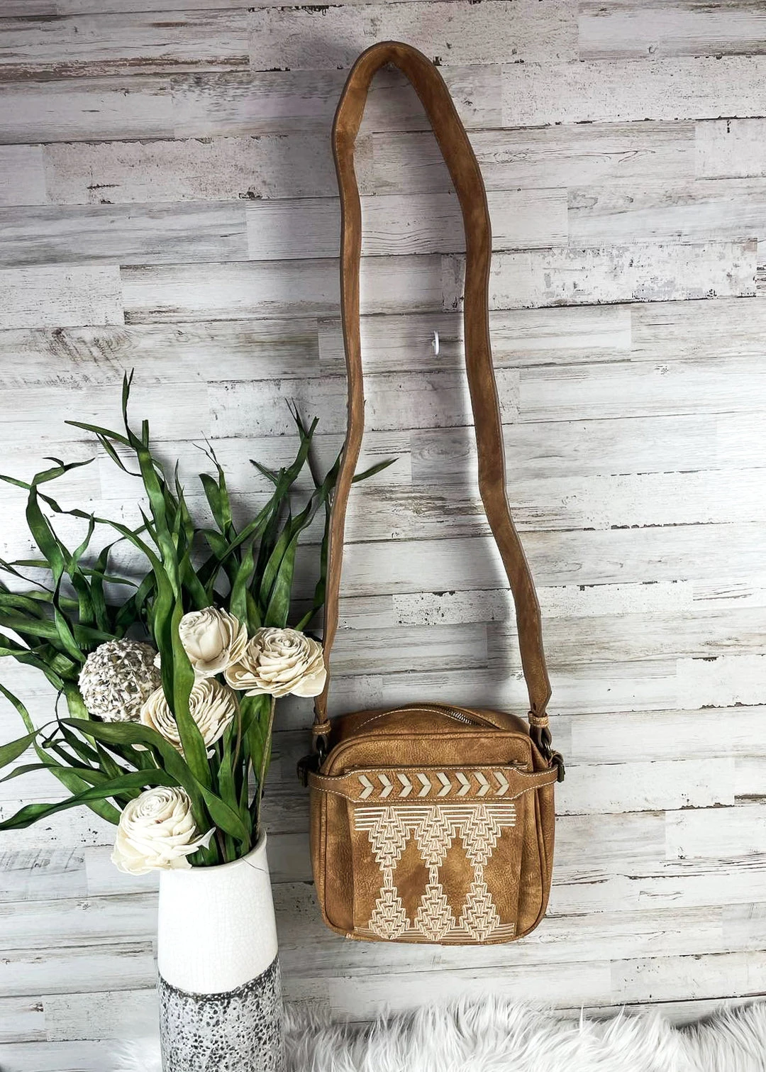 - Stay trendy with the **Trenditions Aztec Courtney Small Crossbody Handbag**, featuring a unique Aztec design and compact size for everyday use.