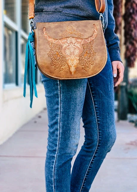 - The Trenditions Boho Steer Skull Wallet Crossbody Handbag combines unique boho design with practicality, featuring a striking steer skull motif for a standout look.