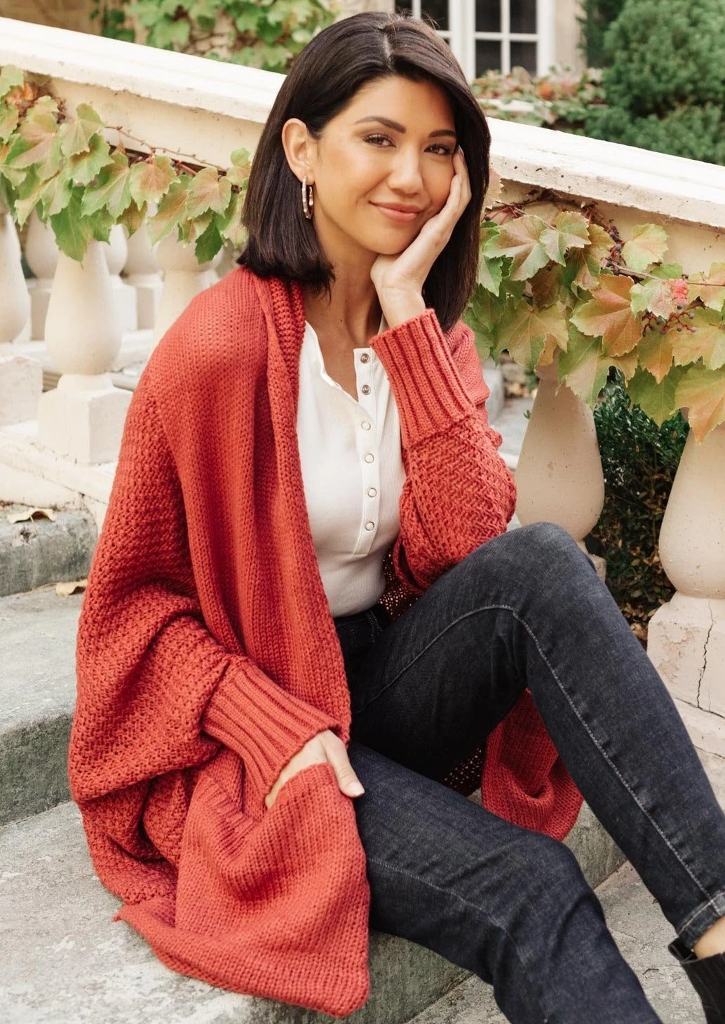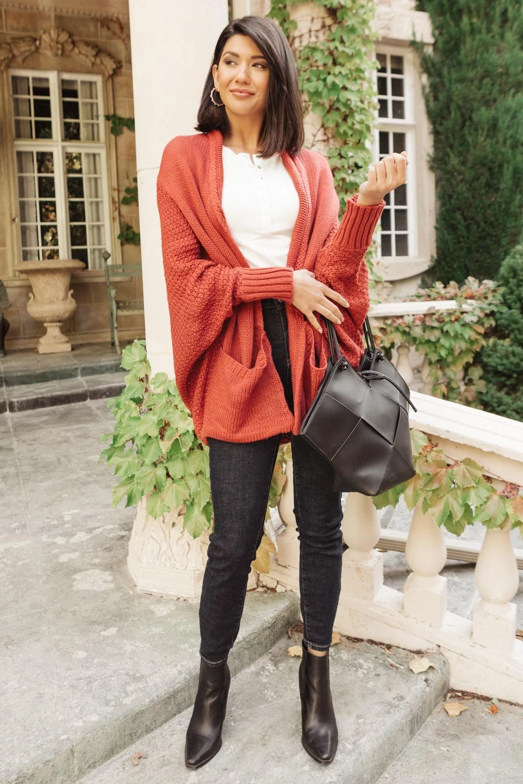- Elevate your style with this vintage-inspired rust cardigan from Ave Shops. Perfect for any season, it combines fashion and comfort effortlessly.