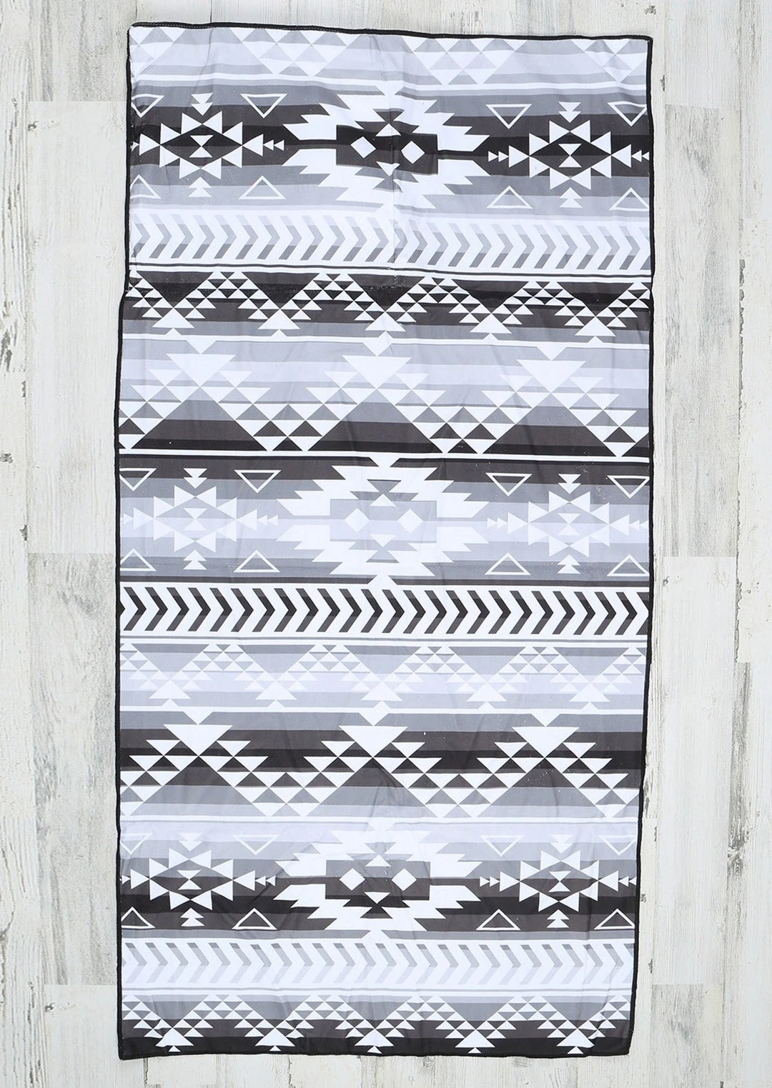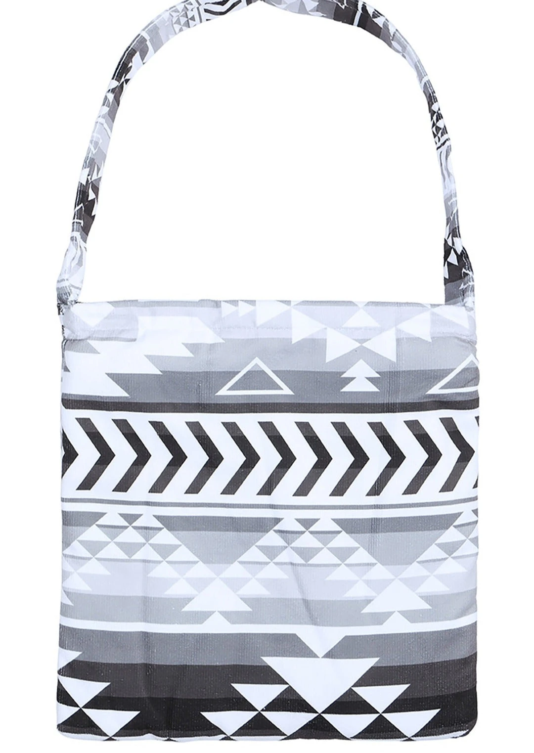- Featuring a trendy Aztec black design, this 2-in-1 tote and towel is crafted from high-quality, durable materials. The foldable design ensures easy portability, making it ideal for travel, picnics, or a day at the beach.