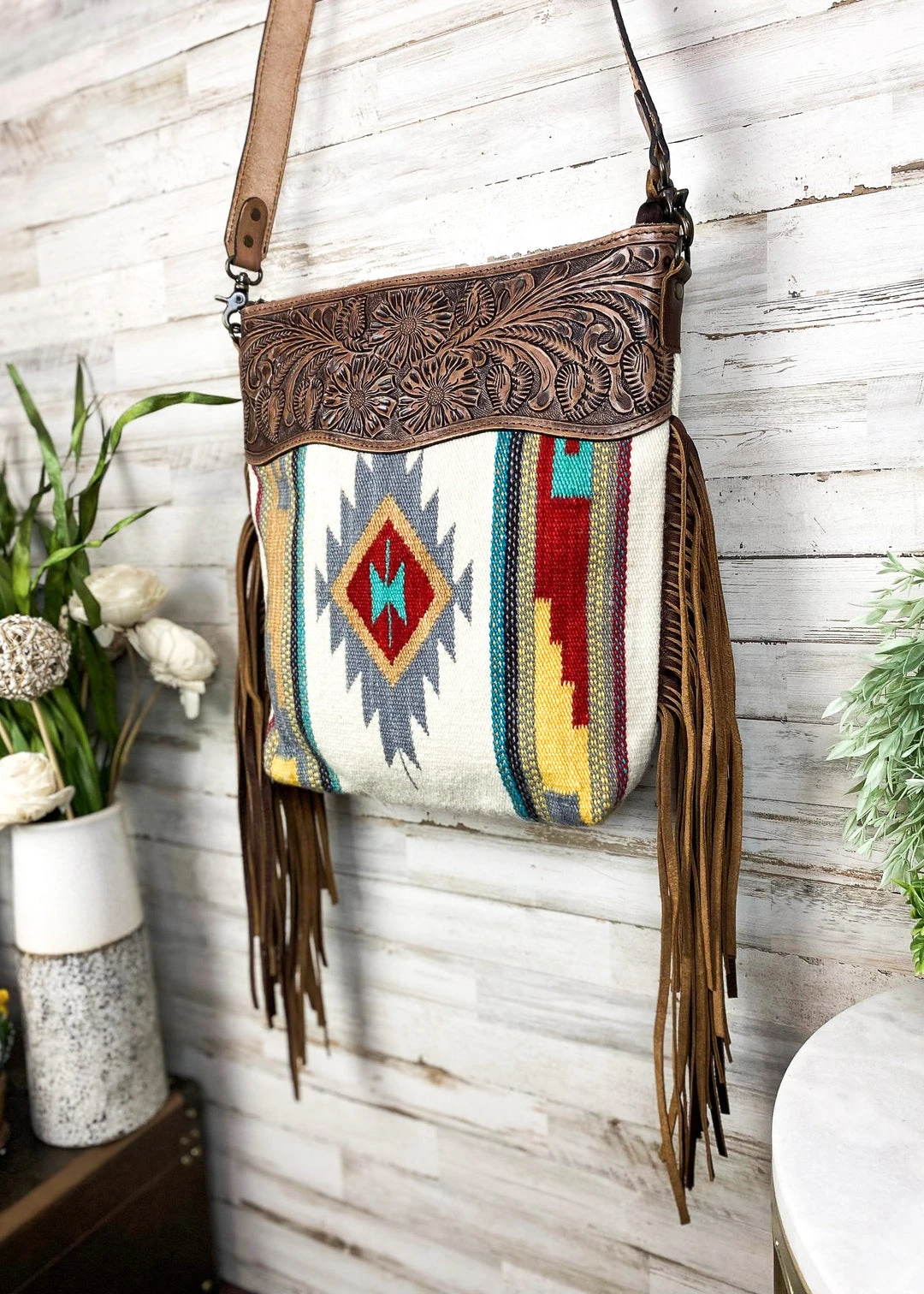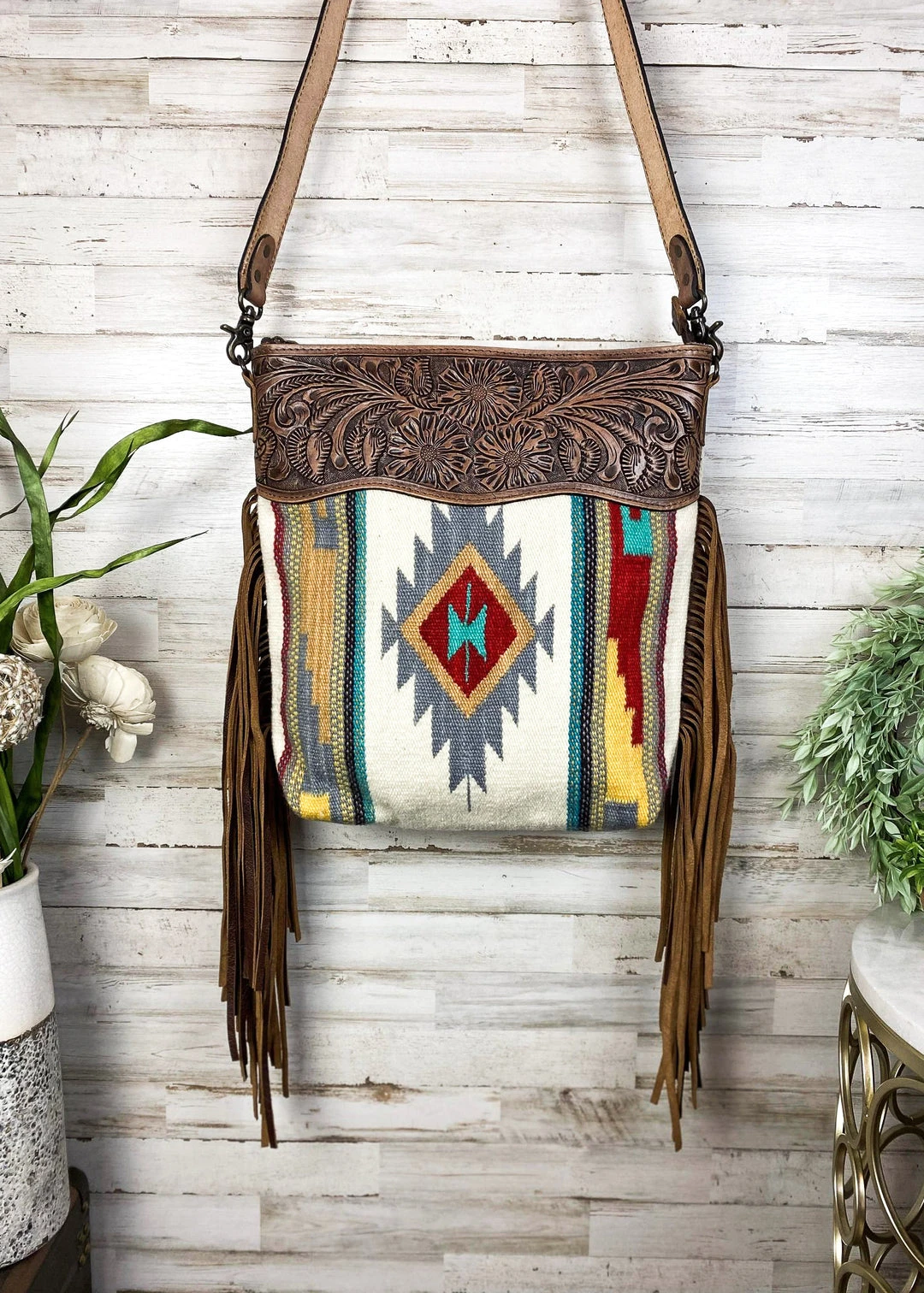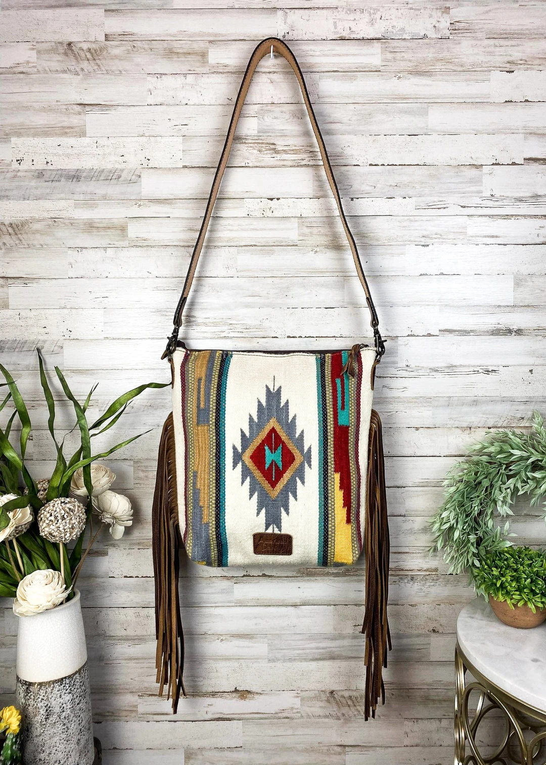 - The Wyoming Wonderful Saddle Blanket Fringe Handbag by American Darling combines rustic charm with modern functionality. This crossbody bag features a unique saddle blanket design with fringe detailing, making it a standout accessory for any outfit.